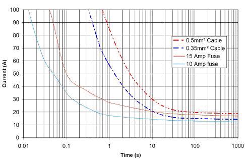 熔斷器的工作原則是一個簡單的I2R與時間的關(guān)系。電流越大,熔斷或開路時間越短。熔斷器的功耗與通過熔斷器的電流的平方成正比。當(dāng)功耗過高時,熔斷器熔斷。這個特性同樣適用于受熔斷器保護(hù)的線束。當(dāng)熔斷器的“熔斷”特性與所保護(hù)的線束相似,只是處理電流能力略低時,熔斷器是一個理想的選擇。