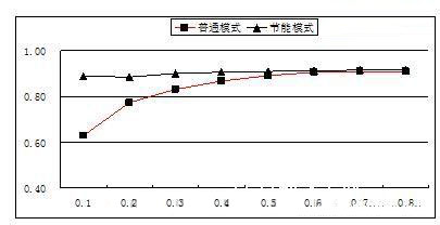 針對電源部分的損耗,戶外電源的工作模式和室內(nèi)電源是一樣的,正常情況下為均流工作模式。市電正常時模塊負(fù)載率較低,電源系統(tǒng)大多數(shù)沒有工作在系統(tǒng)最佳效率區(qū)間,因此可以采用電源模塊休眠技術(shù)根據(jù)系統(tǒng)負(fù)載狀態(tài),動態(tài)調(diào)整工作模塊數(shù)量,使系統(tǒng)始終工作在最佳效率區(qū)間,從而降低系統(tǒng)的能耗。圖1表示了電源系統(tǒng)在普通工作模式下和節(jié)能模式下的系統(tǒng)典型效率比較。從圖1可看出,采用休眠節(jié)能模式,電源系統(tǒng)的效率在整個負(fù)載范圍內(nèi)基本保持不變,有效的降低了電源系統(tǒng)在低負(fù)載條件下的能耗。另一方面,對于戶外電源來說,電源系統(tǒng)效率提高會降低設(shè)備倉的發(fā)熱量,降低設(shè)備倉的溫度。