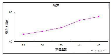 音頻噪聲污染主要控制方法是選用低噪音換熱單元,同時機柜采用消音措施。研究表明,換熱單元調(diào)速可有效的降低機柜噪音。圖5是某型戶外產(chǎn)品噪音水平與環(huán)境溫度關(guān)系曲線,從曲線可看出,采用調(diào)速后,隨著環(huán)境溫度減小,戶外柜噪音明顯降低。由于夜晚時環(huán)境溫度變低,因此采用該項技術(shù)的設(shè)備晚間有更低的噪音水平,非常符合實際應(yīng)用環(huán)境的需要。