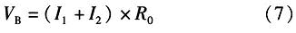 B點(diǎn)的電壓為電阻上的電壓,可由歐姆定理計(jì)算得到。計(jì)算溫度上升翻轉(zhuǎn)點(diǎn)TH,當(dāng)溫度上升時(shí),由前分析可知,TSD為高電平,M2截止。因此流入R0的電流只有I1一路。此狀態(tài)下VB電壓的表達(dá)式為
