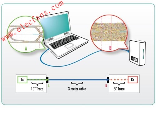 為滿足兼容性要求,USB3.0信號必須可以通過3米長的線纜,并保持信號眼圖開口有足夠的寬度。但這只是部分的路徑,因為在兼容性測試中測量的是接收器經(jīng)過均衡化處理過后的信號。舉例來說,在一般的筆記本電腦架構(gòu)中,USB控制芯片到連接器的距離大約是10英寸,因此信號實際上可能另外經(jīng)過大約半米的路徑和數(shù)個連接器。