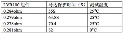 選取兩片 Rmin 電阻 0.22ohm 的 LVR100 和功率電阻集成的組件,下面表 1 為馬達(dá)的保護(hù)時間。