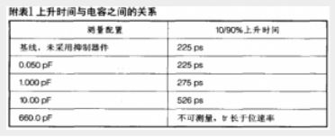 通常,USB 2.0 支持 480Mbps (bits per second) 的數(shù)據(jù)傳輸;DVI 和 HDMI 協(xié)議更是分別支持高達(dá) 8Gbps 和 5Gbps 的數(shù)據(jù)傳輸帶寬。在 USB 2.0、DVI 和 HDMI 的高速數(shù)據(jù)率下,傳統(tǒng)保護(hù)裝置的寄生電容可能破壞信號(hào)的完整性或令其失真。失真表現(xiàn)為由較慢的上升和下降時(shí)間所致的高態(tài)/低態(tài)瞬變的前沿和后沿被修圓。上升和下降時(shí)間較慢會(huì)給系統(tǒng)帶來一些問題,其中最重要的是時(shí)序問題。電路在特定的時(shí)間需要穩(wěn)定的“高”態(tài)和“低”態(tài)。隨著各狀態(tài)之間過渡時(shí)間的增加,電路有可能檢測到不完整的過渡期,從而將數(shù)據(jù)誤差引入系統(tǒng)。附表1是不同寄生電容 ESD 抑制器件對(duì)數(shù)據(jù)上升沿時(shí)間 (10%至90%高電平) 所造成的影響比較。