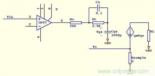 但Ro是運(yùn)放內(nèi)部電阻,無法操作,因此在Ro后添加一只電阻Rs,并將Cs與Rs并聯(lián)。