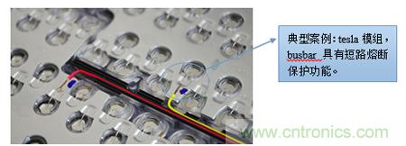 另外一種是電芯外部增加fuse的設(shè)計方案,比如在模組的busbar上設(shè)計薄弱的過流界面。模組短路時,busbar會熔斷,從而起到短路斷開功能。這樣設(shè)計有一個優(yōu)點:短路斷開時,電芯不會有反向電壓。同樣的,在pack系統(tǒng)中,該反向電壓會比較高,busbar熔斷常伴隨著拉弧等安全問題。