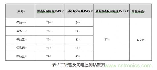 我們都知道二極管有個反向擊穿的極限電壓,絕大多數(shù)的二極管廠商都沒把它寫入數(shù)據(jù)手冊,但在大多數(shù)情況下為了節(jié)省成本不可能將二極管反向耐壓降額到50%左右使用,那么反向電壓裕量是否足夠,這對評估該二極管反向耐壓應降多少額使用較為安全是有一定意義的。從下表中可看出,反向電壓的裕量并不像網(wǎng)上所說的那樣是額定反壓的2~3倍。
