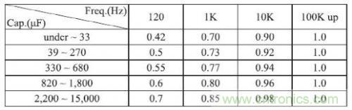 圖2.電容紋波電流頻率因子