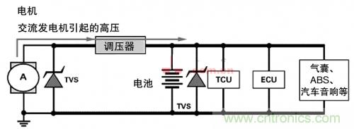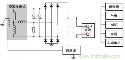 現(xiàn)代汽車設(shè)計(jì)中,所有車載電子設(shè)備都要連接電池和交流發(fā)電機(jī)。交流發(fā)電機(jī)是電氣瞬態(tài)的主要來源,其中最 糟的是拋負(fù)載。這種情況發(fā)生在電池已經(jīng)斷開而交流發(fā)電機(jī)正在發(fā)電、其他負(fù)載還在交流發(fā)電機(jī)環(huán)路上時(shí)。如果置之不理,電氣尖峰和瞬態(tài)將沿著電線傳遞,導(dǎo)致個(gè)別電子設(shè)備和傳感器故障,或永久損壞汽車的電子系統(tǒng)。當(dāng)然,拋負(fù)載失控還會(huì)威脅車輛本身的安全性和可靠性。
