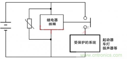 圖3.MOV對汽車子系統(tǒng)供交流發(fā)電機(jī)瞬態(tài)保護(hù)