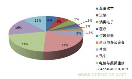 中國(guó)連接器市場(chǎng)已經(jīng)占據(jù)全球30%左右連接器市場(chǎng),但是我國(guó)連接器還主要以中低端為主,高端連接器占比較低,從全球來看,汽車連接器是最大應(yīng)用市場(chǎng)。根據(jù)統(tǒng)計(jì),汽車市場(chǎng)應(yīng)用是全球連接器最大的應(yīng)用市長(zhǎng),占比達(dá)到 22.2%。其次是電信與數(shù)據(jù)通信,約有 21%,另外計(jì)算機(jī)與工業(yè)分別占比達(dá)到 16%、12%。