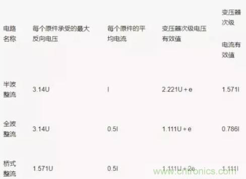注:U為負載兩端電壓值;I為負載上電流值;e為整流二極管壓降,一般取0.7V。