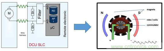 電機(jī)有磁極、轉(zhuǎn)子線圈、換向器組成。根據(jù)右手定律轉(zhuǎn)子線圈通電后再磁極磁場的作用下產(chǎn)生運(yùn)動。運(yùn)動到磁場邊緣是磁場變?nèi)?,電動勢減小,電流增大。換向器改變轉(zhuǎn)子線圈的電流方向,重新進(jìn)入磁場電動勢增大,電流減小。轉(zhuǎn)子線圈不斷轉(zhuǎn)動、電動勢和電流不斷變化,從而紋波不斷產(chǎn)生。所以紋波是電機(jī)的固有特性,通過計(jì)算紋波的個(gè)數(shù)就能計(jì)算出轉(zhuǎn)子換向的次數(shù),就能計(jì)算出窗戶的相對位置,結(jié)合時(shí)間就能得出電機(jī)的轉(zhuǎn)速。