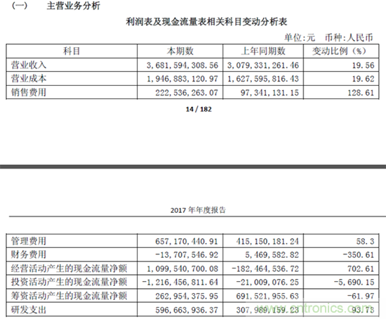 匯頂科技2017年的公司研發(fā)支出為5.97億元,較2016年3.08億元增加93.83%,研發(fā)開(kāi)支占銷售收入比重為16.2%。對(duì)于研發(fā)費(fèi)用的增加,公司解釋稱,是為了在新技術(shù),新產(chǎn)品領(lǐng)域?yàn)楣镜某掷m(xù)增長(zhǎng)提供更有力的動(dòng)力,符合公司的長(zhǎng)期發(fā)展戰(zhàn)略。