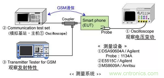 本次置換評(píng)估中,對(duì)GSM通信時(shí)的①發(fā)射特性、②蓄電池的電壓變動(dòng)和③嘯叫進(jìn)行評(píng)估。