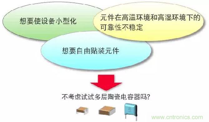 選擇多層陶瓷電容器,元件的小型化、元件貼裝位置自由度的提高使基板具有小型化和由于優(yōu)越的耐濕性,而減少防濕對策的優(yōu)勢。