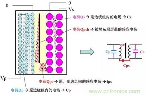 有屏蔽層變壓器內部的電荷分布情況