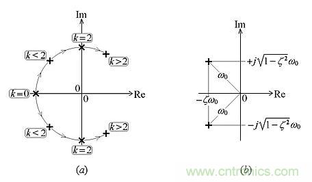 圖10:(a)作為k的函數的根軌跡(b)在阻尼響應狀態(tài)下的極點對。