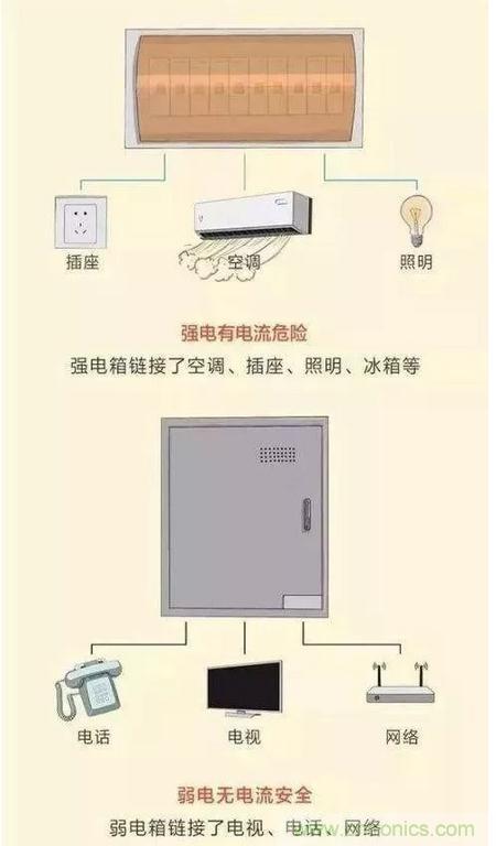 其中的強(qiáng)電是存在電流危險(xiǎn)的,主要包括有空調(diào)、插座、照明、冰箱等;而弱電是沒有電流安全的,涵蓋了電視、電話、網(wǎng)絡(luò)。