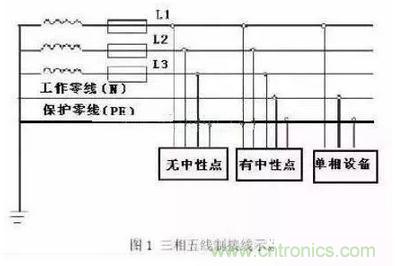 在這樣的供電系統(tǒng)中地線和零線合二為一稱之為PEN線,值得注意的是這種系統(tǒng)中的PEN線需要在配電網(wǎng)中重復(fù)接地形成一個(gè)接地網(wǎng),以保證PEN線的零電位。