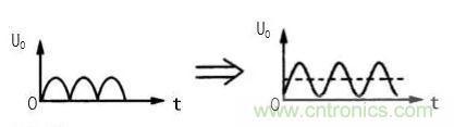 但根據(jù)波形分解原理可知,這一電壓可以分解一 個直流電壓和一組頻率不同的交流電壓,如圖 1(b)所 示。在圖 1(b)中,虛線部分是單向脈動性直流電壓 U。 中的直流成分,實線部分是 UO 中的交流成分。