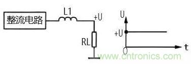 圖 3 所示是電感濾波原理圖。由于電感 L1 對直流 電相當于通路,這樣整流電路輸出的直流電壓直接加 到負載 RL 上。