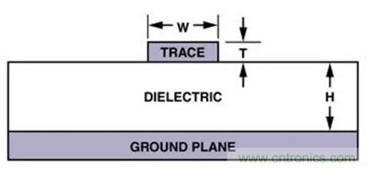 微帶控制阻抗印制線,如(圖十三)所示,可以用在PCB的任意一面;它直接採(cǎi)用其下面的接地平面作為其參考平面。