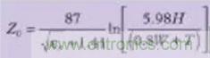 (公式六)可以用于計(jì)算一塊FR4板的特徵阻抗。