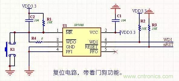 帶看門狗和手動復(fù)位,價格便宜(美信的貴很多),R4為調(diào)試用,調(diào)試完后焊接好R4。