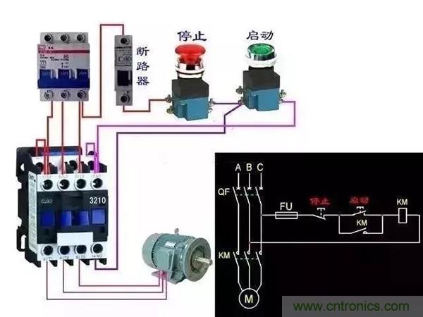 因為我們按下啟動按鈕時接觸器已經(jīng)吸合,輔助觸頭也已經(jīng)吸合,所以輔助觸頭下方電源也開始給線圈A2送電,所以啟動按鈕松開,輔助觸頭下方還在送電,這樣接觸器就形成了自鎖,而我們按下停止按鈕,電源斷電接觸器斷開,所以輔助觸頭下方電源也就不起作用了,這就是接觸器自鎖的原理。