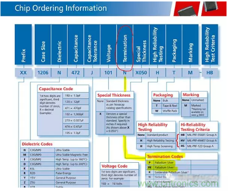 對(duì)于Knowles Novacap來(lái)說(shuō),它們的環(huán)氧樹(shù)脂安裝代碼由“P”(非RoHS)和“PR”(RoHS)指定為“鈀銀”端子。