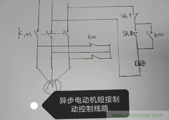 這種電路一般出現(xiàn)制動問題,大多都是由于頻繁啟停導致剎車系統(tǒng)問題,而所謂的剎車系統(tǒng)就一交流接觸器,結(jié)合電路圖不難看出,當交流接觸器常閉觸點出現(xiàn)問題,剎車系統(tǒng)就出問題了。diangon.com在電源斷開時,電機在慣性作用下轉(zhuǎn)子不會立刻停下來,而且轉(zhuǎn)子存在剩磁,斷電時KM兩副常閉觸點將電動機定子繞組短接,而轉(zhuǎn)子的慣性旋轉(zhuǎn)磁場切割定子閉合的繞組后,電機內(nèi)部就形成一種反向制動力,從而達到制動目的。