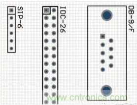 (c)整流橋的元器件封裝形式 圖F1-18 常用的整流橋 (7) 接插件。在電路板設(shè)計(jì)中,經(jīng)常用到的接插件有單排插座、雙排插座和一些專用的接口等,如圖F1-19所示。