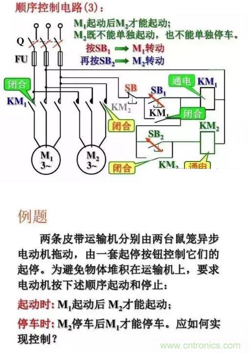 【導(dǎo)讀】在電氣控制電路里,順序控制也是應(yīng)用很廣泛的電氣控制電路,經(jīng)常被用在傳送帶,工業(yè)流水線,機(jī)械手等控制當(dāng)中,關(guān)于順序控制電路,簡(jiǎn)單一句話就說明原理:一個(gè)接一個(gè)的啟動(dòng),全部停止或者一個(gè)接一個(gè)的停止,今天我們就重點(diǎn)來看一下順序控制電路和具體實(shí)例。