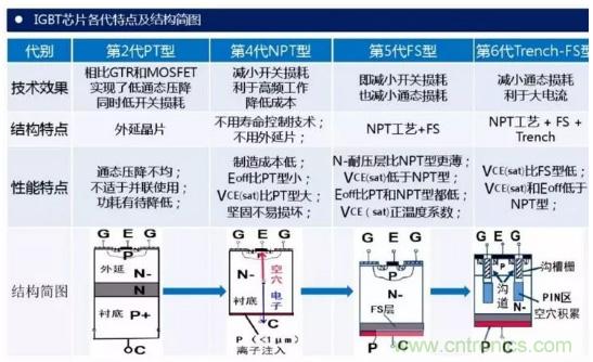 1985年前后美國GE成功試制工業(yè)樣品(可惜后來放棄)。自此以后, IGBT主要經(jīng)歷了6代技術及工藝改進。