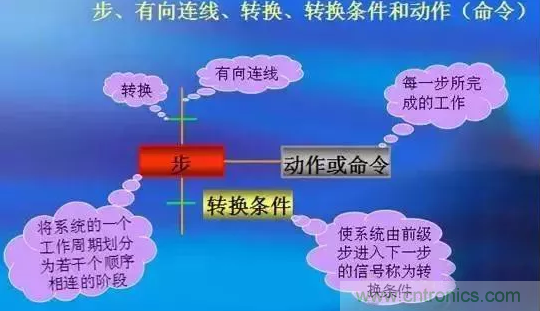 在控制系統(tǒng)的一個(gè)工作周期中,各依次順序相連的工作階段,稱為步或工步,用矩形框和文字(或數(shù)字)表示。步有兩種狀態(tài):“活動(dòng)步、“非活動(dòng)步” 、“初始步”:一系列活動(dòng)步?jīng)Q定控制過(guò)程的狀態(tài)。對(duì)應(yīng)控制過(guò)程開(kāi)始階段的步,每一個(gè)功能表圖至少有一個(gè)初始步,初始步用雙線矩形框表示。