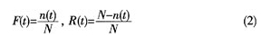 產(chǎn)品在一定時間內(nèi)的可靠度和累積失效概率可以通過大量試驗來確定。例如取N個產(chǎn)品進(jìn)行試驗,若在規(guī)定時間內(nèi)有n個失效,則: