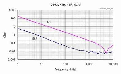 LDO需要增加外部輸入和輸出電容器。利用較低ESR的大電容器一般可以全面提高電源抑制比(PSRR)、噪聲以及瞬態(tài)性能。陶瓷電容器通常是首選,因為它們價格低而且故障模式是斷路,相比之下鉭電容器比較昂貴且其故障模式是短路。輸出電容器的等效串聯(lián)電阻(ESR)會影響其穩(wěn)定性,陶瓷電容器具有較低的ESR,大概為10mΩ量級采用陶瓷電容時,建議使用X5R和X7R電介質材料,這是因為它們具有較好的溫度穩(wěn)定性。圖為X5R的ESR和頻率曲線。