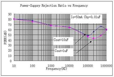 如圖為輸出電容對PSRR的影響。大電容器一般在一定頻率范圍內會提高電源抑制比(PSRR)
