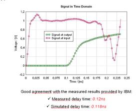 除了CST印制板工作室,CST微波工作室也可以進(jìn)行印制板的信號完整性分析。CST微波工作室是通用的高頻無源仿真軟件,集時域和頻域算法為一體包含七種全波算法:時域有限積分、頻域有限積分、頻域有限元、模式降階法、矩量法、多層快速多極子和本征模法。圖5給出了CST仿真IBM復(fù)雜PCB并進(jìn)行信號完整性分析的考題,仿真得到的電壓延時與實測只差0.002ns。[page]
