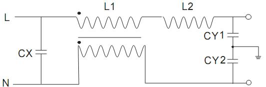 圖1是開關(guān)電源常用的一級EMI 濾波器的電路。圖中的L1為共模扼流圈,Cx、CY1、CY2為安規(guī)電容,對于小型開關(guān)電源來講,由于體積的限制,很多時候會將CY1、CY2會省略掉的,甚至連L1也會省去。圖中 共模扼流圈L1的兩個線圈匝數(shù)相等,方向相同,這兩個電感對于差模電流和主電流所產(chǎn)生的磁通是方向相反、互相抵消的,因而不起作用;而對于共模干擾信號,兩線圈產(chǎn)生的磁通方向相同,有相互加強(qiáng)的作用,每一線圈電感值為單獨(dú)存在時的兩倍,從而得到一個高阻抗,起到良好的抑制作用。共模電感兩邊感量不相等形成的差模電感L2一起與Cx電容組成一個低通濾波器,用來抑制電源線上存在的差模干擾信號。CY1與CY2的存在是給共模噪聲提供旁路,同時與共模電感一起,組成LC低通濾波器。共模噪聲的衰減在低頻時主要由電感起作用,而在高頻時大部分由電容CY1及CY2起作用。同時,在安裝與布線時應(yīng)當(dāng)注意:濾波器應(yīng)盡量靠近設(shè)備入口處安裝, 并且濾波器的輸入和輸出線必須分開,防止輸入端與輸出端線路相互耦合,降低濾波特性。濾波器中電容器導(dǎo)線應(yīng)盡量短,以防止感抗與容抗在某頻率上形成諧振。