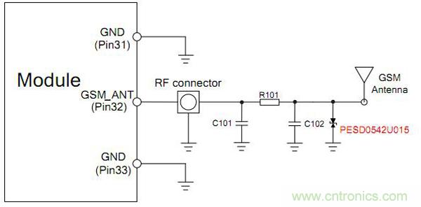 此模塊USB經(jīng)常用來(lái)配置數(shù)據(jù),插拔容易被靜電損壞,本方案可以采用分立器件或者集成器件,但要確保選擇的器件結(jié)電容小于3PF。