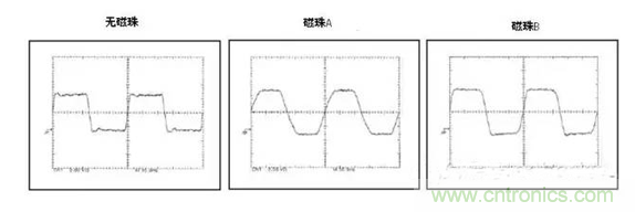 從輸出波形來看,磁珠B的輸出波形失真要明顯小于磁珠A。