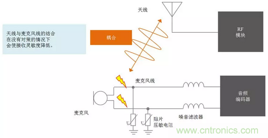 通過同時(shí)使用噪音濾波器與貼片壓敏電阻改善接收靈敏度,抑制ESD(靜電放電)