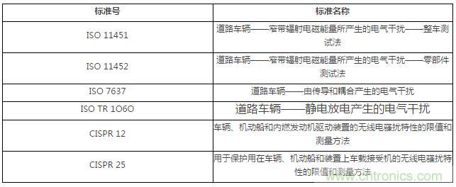 國(guó)際汽車(chē)EMC標(biāo)準(zhǔn)