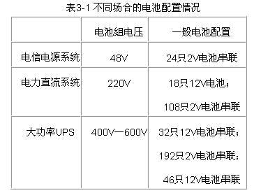 電池組是由多個單電池串聯(lián)構(gòu)成的,一般的配置情況如表3-1所示。