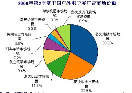 本季度超大LED市場有較好表現(xiàn),份額提高到11.3%,主要因?yàn)槠鋸V告主在第2季度的投放額要大大超過第1季度,這與主要運(yùn)營商采取了大幅增加折扣的促銷方式以及經(jīng)濟(jì)回暖密切相關(guān)。