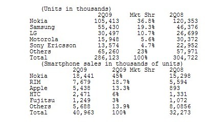 Gartner稱截至6月底的上一季度全球手機(jī)銷量為2.86億部,相比去年減少6.1%,相比上一季度減少9.4%——這是手機(jī)業(yè)歷史上最大幅度的下滑。