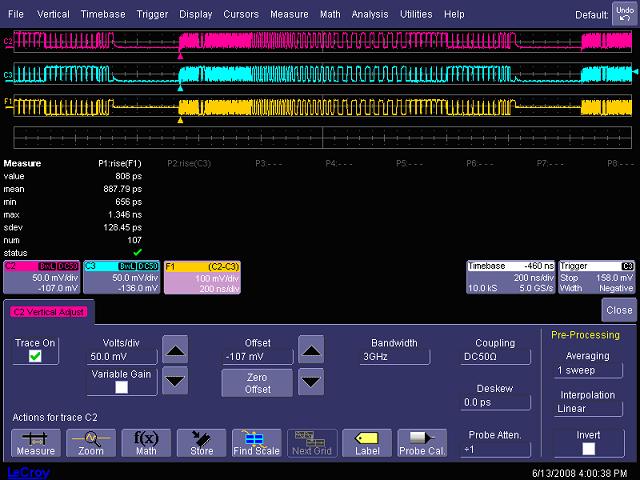 圖17,3GHz帶寬時(shí)測(cè)試USB2.0 high speed信號(hào)的上升時(shí)間