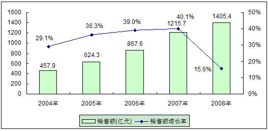 2008年市場(chǎng)增速跌入近幾年低谷