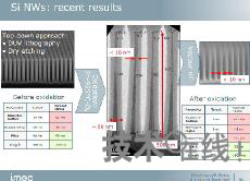 目前,IMEC正在嘗試試制適于太陽能電池的硅納米線。要實(shí)現(xiàn)1.7~1.8eV的帶隙,硅納米線的直徑需要降至2~4nm。為形成這種極細(xì)的硅納米線,IMEC采用了為制造新一代半導(dǎo)體而開發(fā)的EUV曝光。